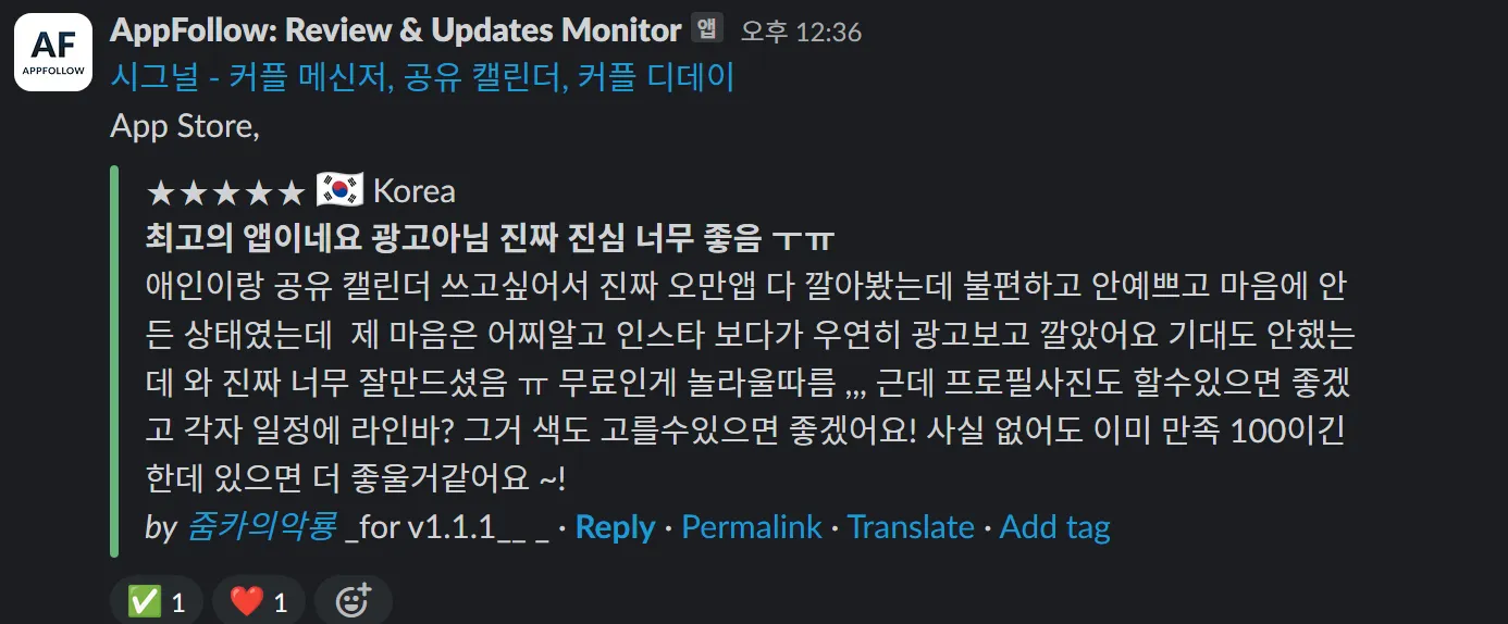 서운함, 답답함 등의 부정적인 감정을 막고 최대한 적절한 정보를 커뮤니케이션 하는 서비스는 당연히 필요하다라는 공통된 생각 아래 서비스를 만들어나가고 있고, 실제로 증명하고 있습니다.