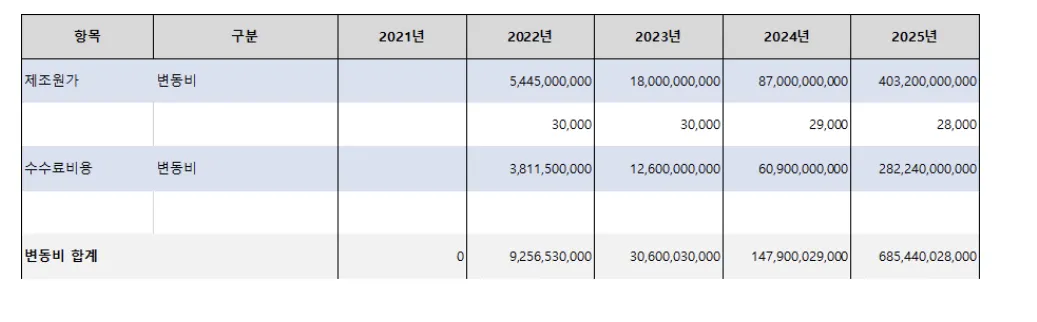 이런 경우 역시 비슷한 형태의 기업의 감사보고서를 찾아서 그 기업이 몇 년도에 매출액 얼마 대비 중요한 비용을 얼마 정도 썼는지 찾아서 그 비율과 비슷하게 우리의 미래 고정비를 예측하면, 최대한 합리적인 사업계획을 완성할 수 있습니다.
