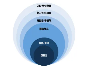 신뢰성>상품,가격>배송/CS>재방문 유인책>한시적 화제성>기타 특수환경