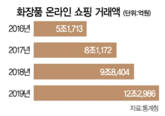 게다가 2016년 이후로 화장품의 온라인 거래액도 함께 성장했음