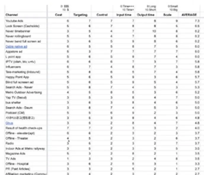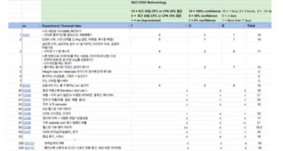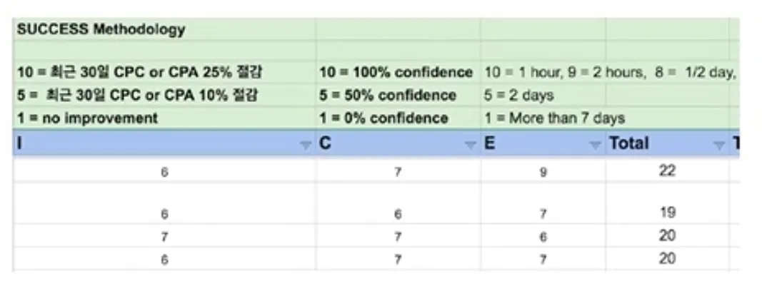 퍼널별, 채널별 ICE 리스트 구축해 우선순위 점검