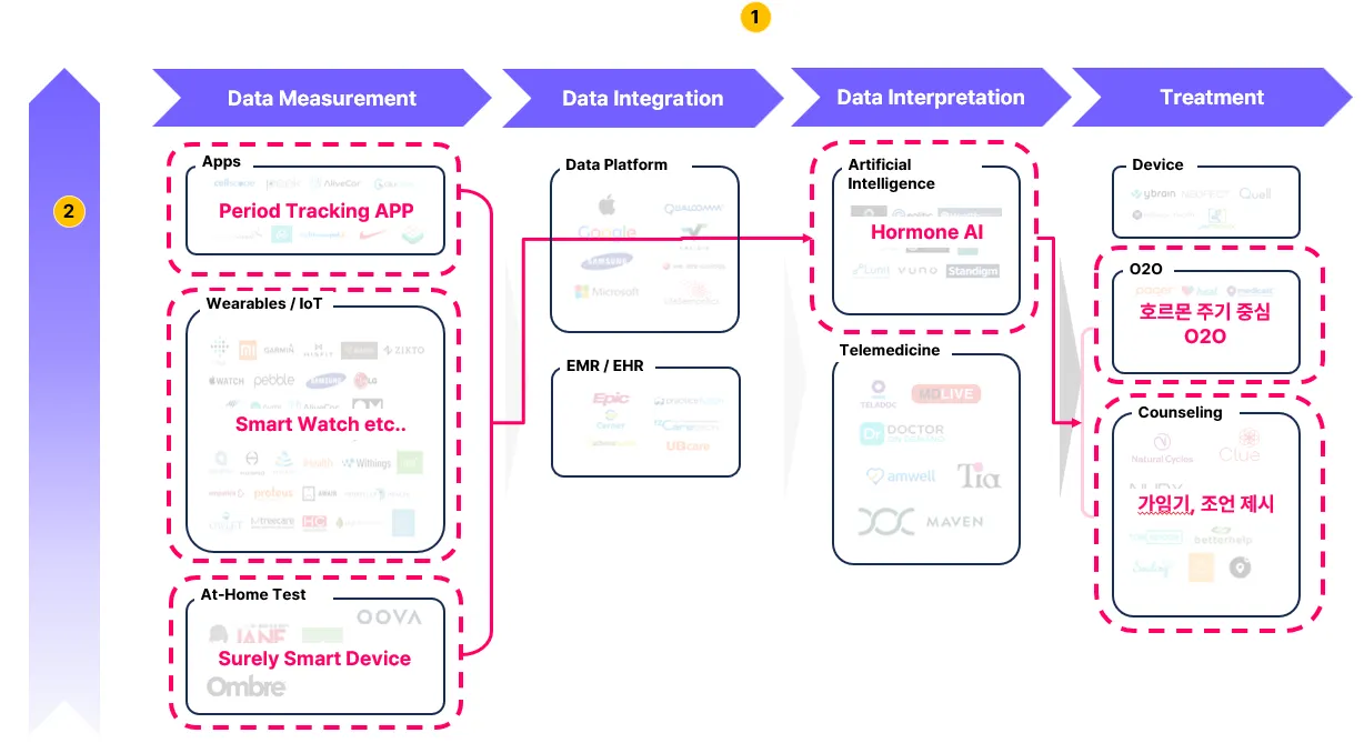 기술의 활용을 통해 신체적, 정신적 건강에 대한 여성 특유의 문제해결을 미션으로 하는 제품 및 서비스의 “시장”