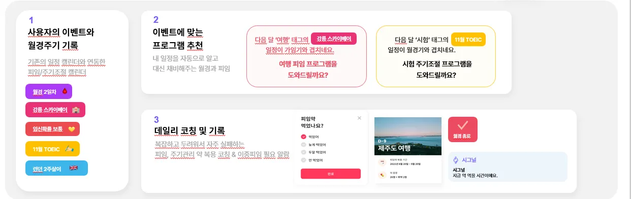 : 애정관계에서, 애매하고 민망한 것을(섹슈얼 웰니스, 연락, 일정 등) 쉽고 효율적으로, 재미있게 소통할 수 있도록 해 주는 플랫폼