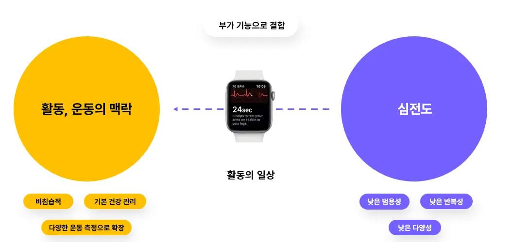 가장 좋은 예시로 애플워치 심전도 측정이 있습니다.