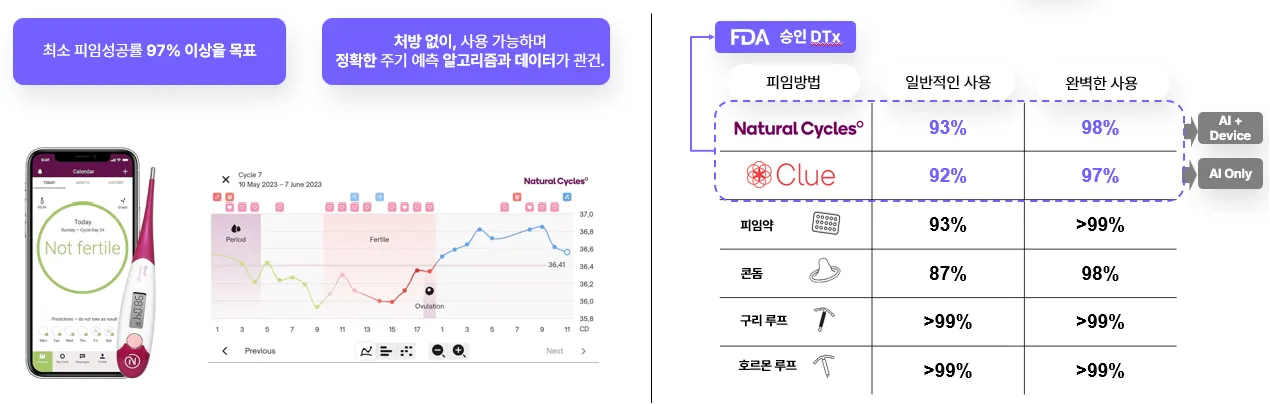 완벽한 사용 시 98% 이상의 피임성공률을 도와주는 “소프트웨어 알고리즘” 이다.