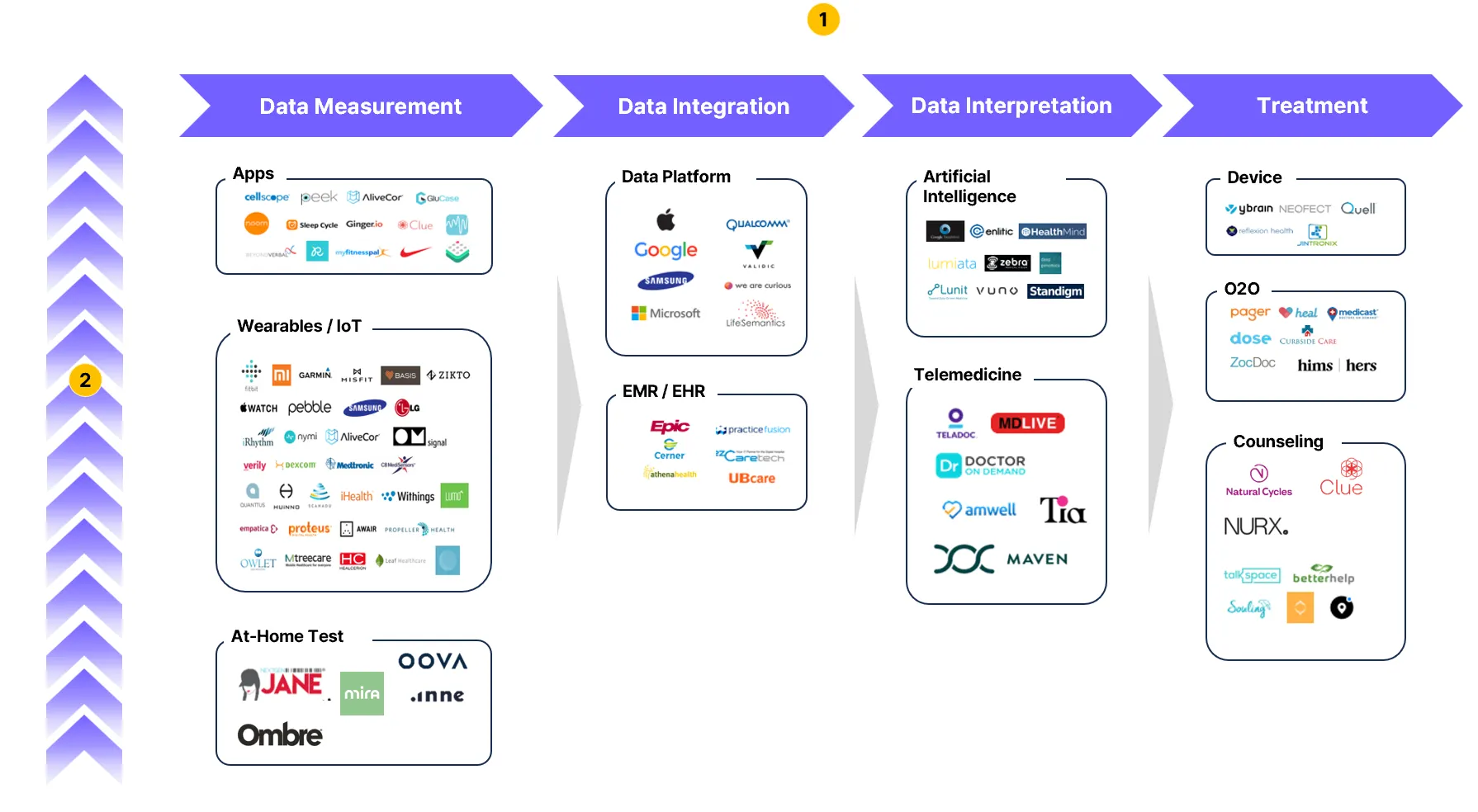디지털 헬스케어를 데이터의 흐름으로 보고 마켓을 정리한다면 이렇게 표현할 수 있는데,