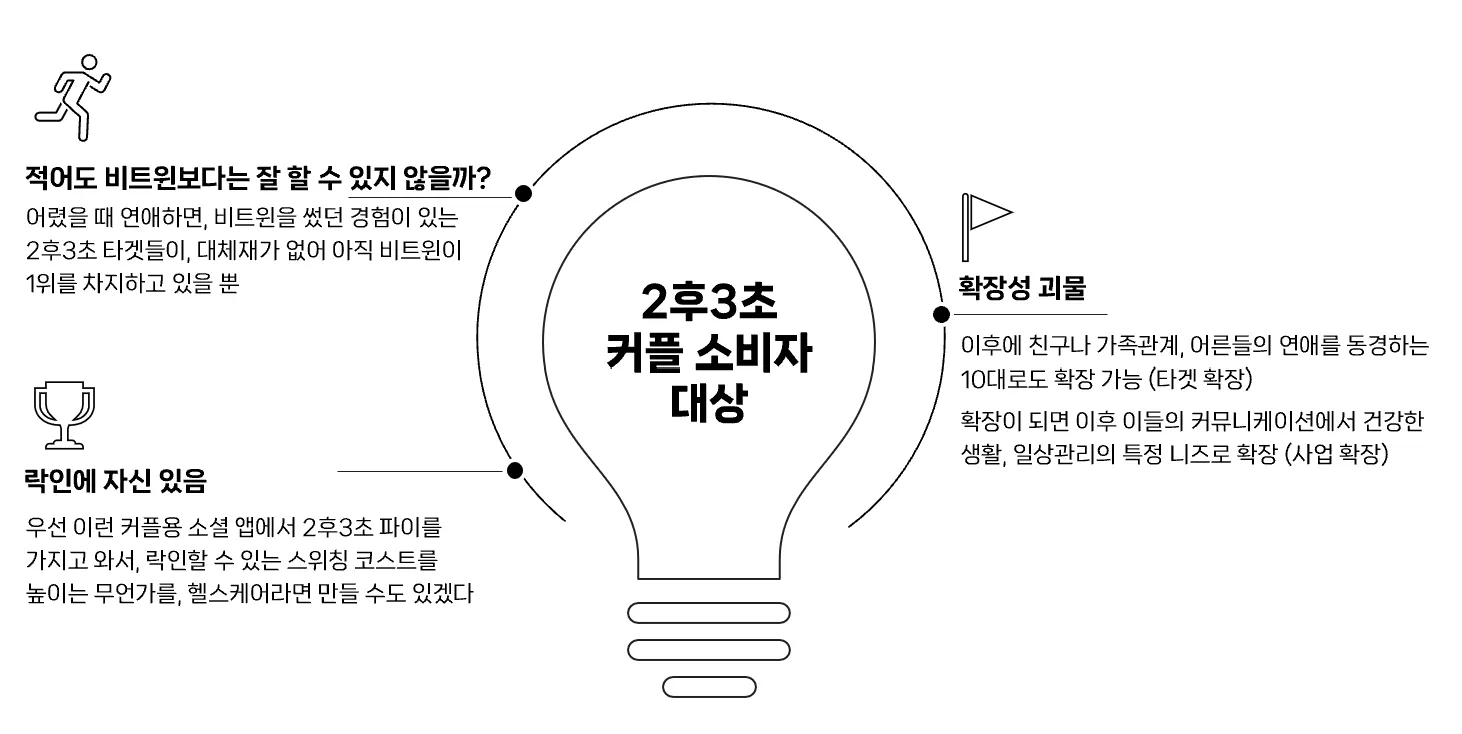 애정 관계, 즉 커플 대상 커뮤니케이션 앱 시장의 빈자리 : 20대 후반 30대 초반