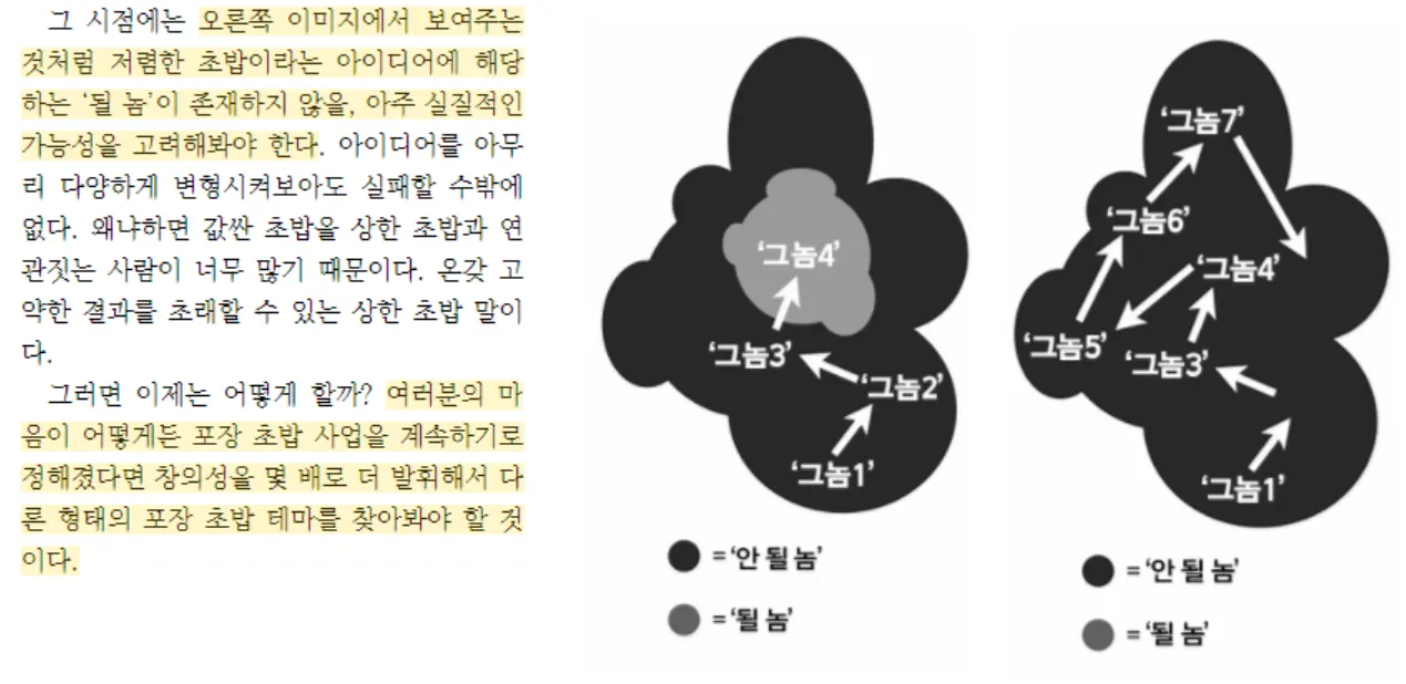 첫번째 혹은 두번째 생각해낸 프리토타이핑이 무조건 최선이라고 생각하지 마라. 왜냐하면 우리의 첫 번쨰 해결책이 최선이자 가장 효과적이고 효율적인 경우는 거의 없기 때문이다.