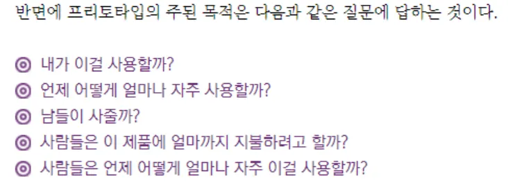 그리고 이 제품을 만들 수 있고 의도한 대로 작동하게 할 수 있다고 자신감을 가져야 실제로 만들 수 있다. 그러나 프리토타이핑의 주목적은 이걸 만들어야 할까? 라는 질문에 대답하는 것이다.