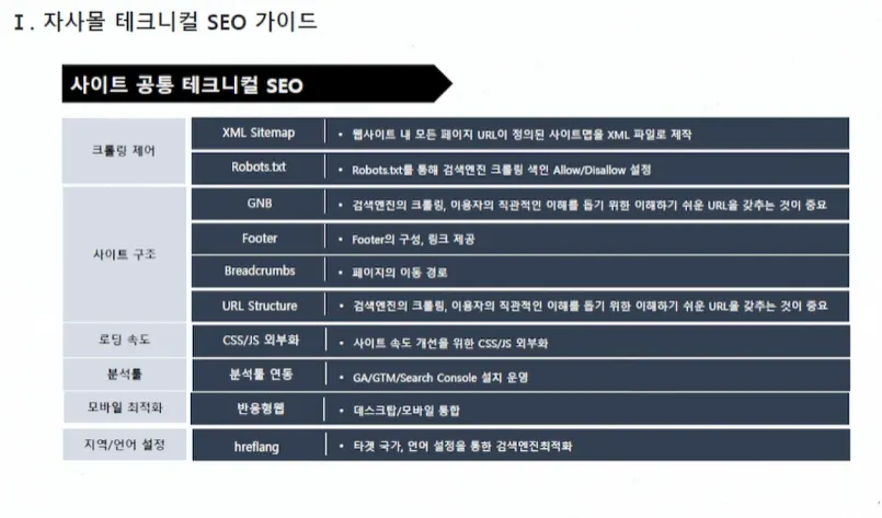 테크니컬 검수 : 크롤링, 인덱싱, 랭킹 → 검색 봇도 읽기 좋은 수준이어야 함