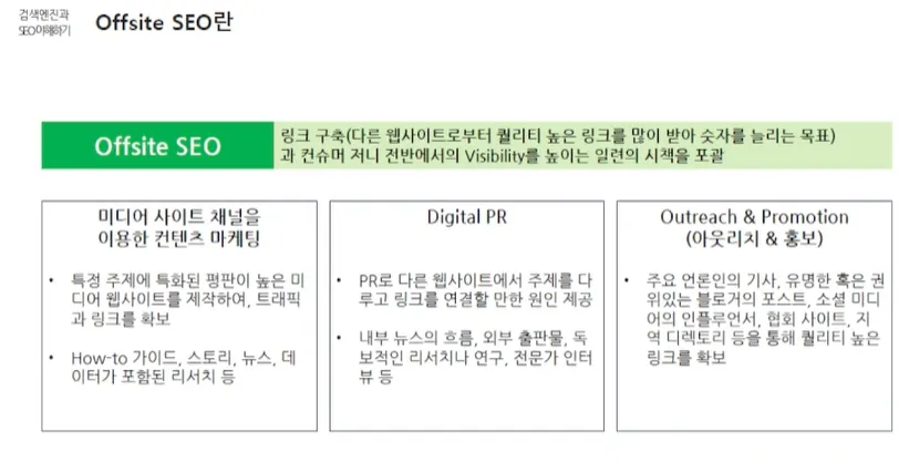 사이트 링크 : 구글에 인덱싱이 되고, 사람들이 잘 검색하는 걸 테크니컬적으로 접근해야한다.