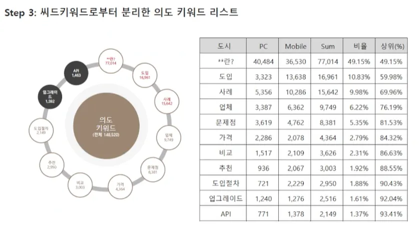 검색 데이터를 네이버, 구글에서 크롤링 → 소비자 인텐트 추출함