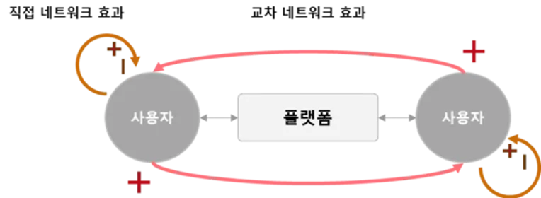 교차 네트워크 효과 : 한 사용자 집단이 다른 니즈를 가진 사용자 집단엥게 서로 영향을 미치는 효과