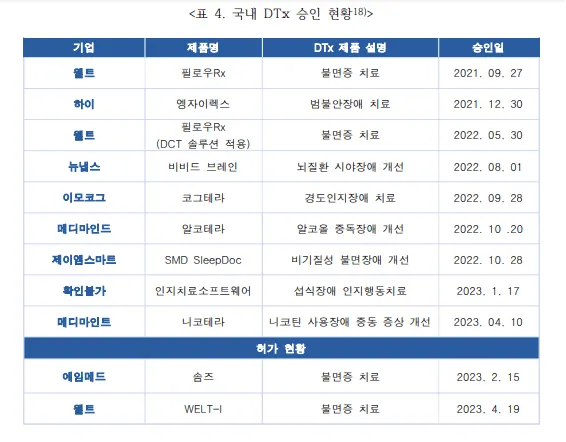출처: 국가생명공학정책연구센터, 디지털 치료제 산업 동향 및 전망