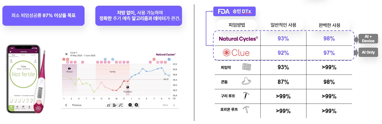 디지털 피임약은 기본적으로 여성 호르몬 패턴 데이터를 학습하여 가장 정확한 주기를 예측해주는 진단 AI라고 분류할 수 있다.