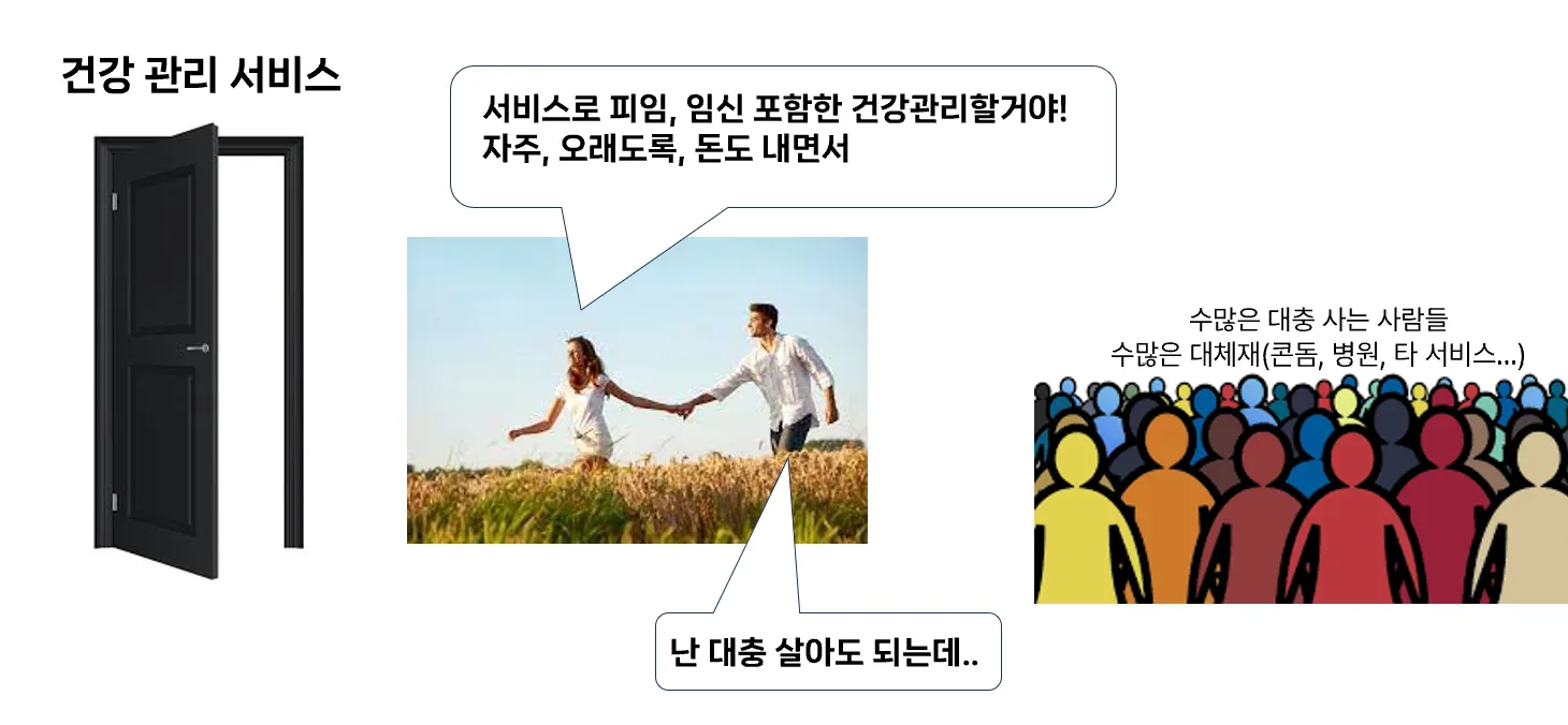 헬스케어가 필요할 때 도와주는 앱이 아니라, 타겟 고객의 가장 강한 반복적, 일상적 니즈를 도와주면서,