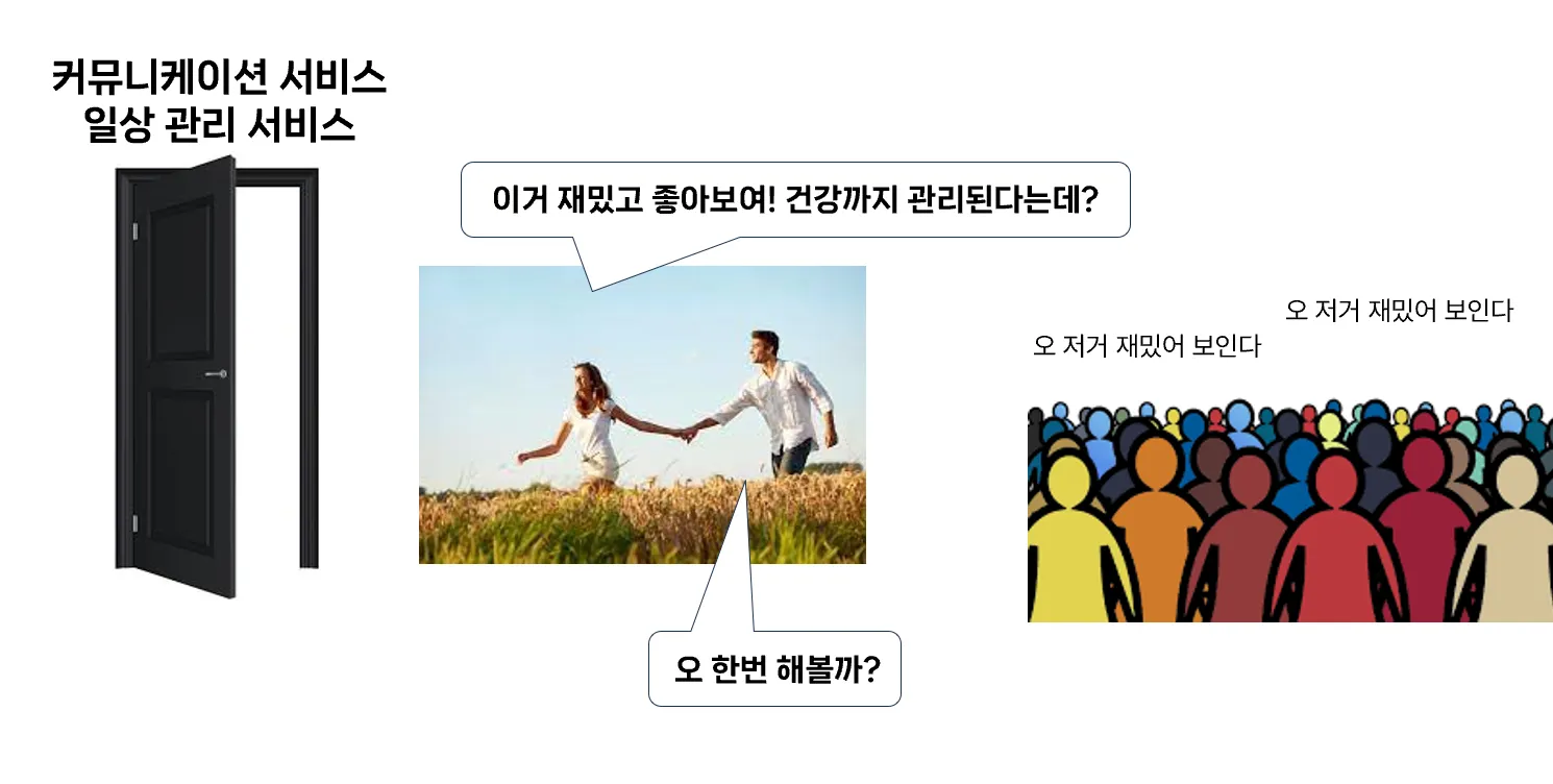 건강관리라는 대문만 커뮤니케이션으로 바꿔도, 서비스의 허들도 낮아지고, 타겟도 넓어졌어요.
