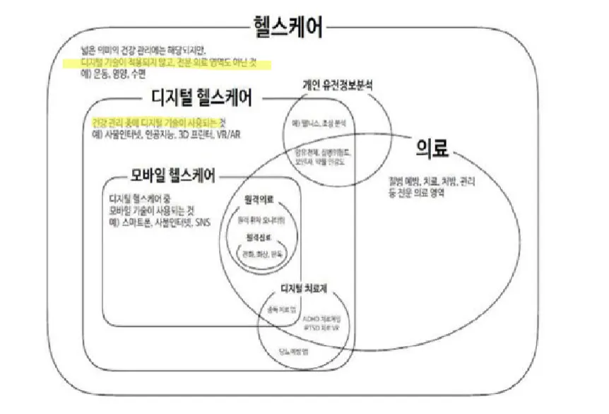 그냥 약도 처방약과 영양제가 있듯이 디지털 치료제도 종류가 있음. 주로 논의되었던 것들은 처방을 받는 2,3,4번.