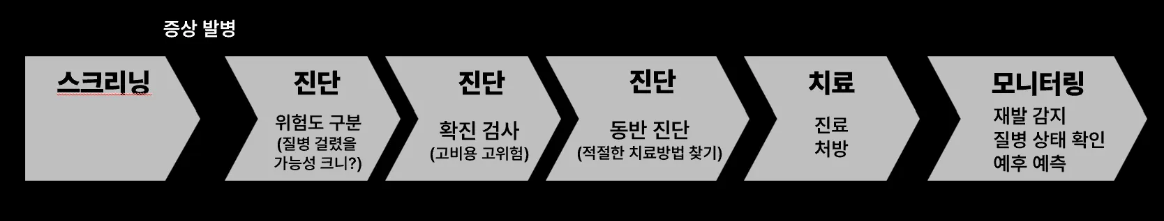 이 두가지 측면에서 의료의 플로우를 따라 서비스의 특성은 어때야 하는지를 중심으로 산업을 뜯어보고자 합니다.