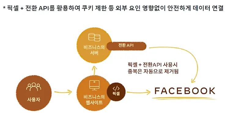 픽셀은 쿠키와 유사한 것인데, 써드 파티 쿠키가 제한이 되는 것이기 때문에 → 자사 서버에 저장하는 연결이 필요함 (전환 API 사용하기)